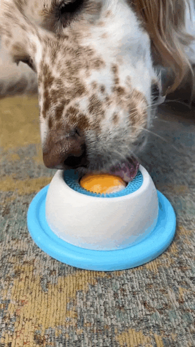 LickSphere works best with soft or semi-soft foods like yogurt, peanut butter (pet-safe), wet food, pâté, or mashed treats. The thicker the texture, the longer the entertainment.